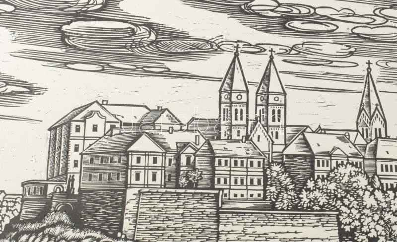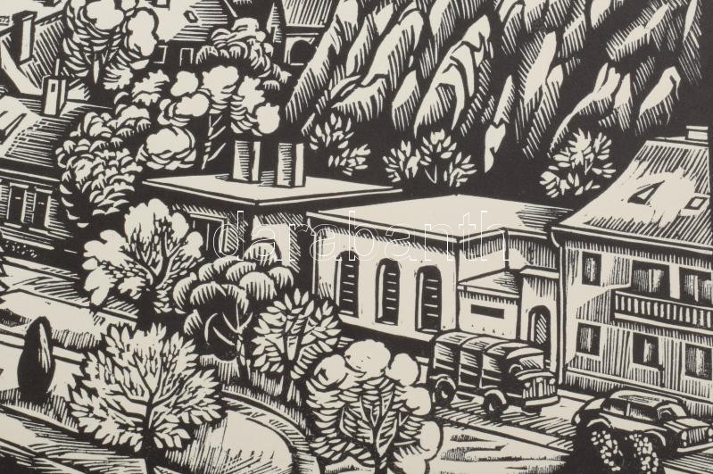 Varga Mátyás (1910-2002): Veszprém, 1975. Fametszet, papír, jelzett a metszeten, 46×66 cm