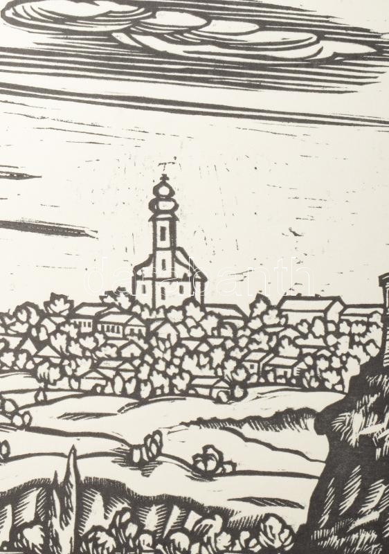 Varga Mátyás (1910-2002): Veszprém, 1975. Fametszet, papír, jelzett a ...