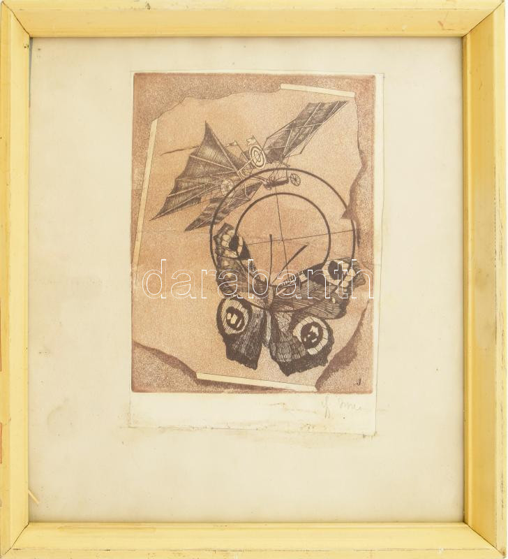 ifj. Imre István (1950-): Célkeresztben (cím nélkül). Rézkarc, papír, jelzett. Lap széle kissé foltos. Üvegezett fakeretben. 20x14,5 cm