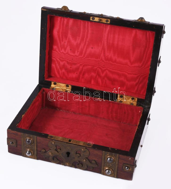 Antik ládika, fa, réz veretekkel, egy hiányzó dísszel, kulcs nélkül 18...