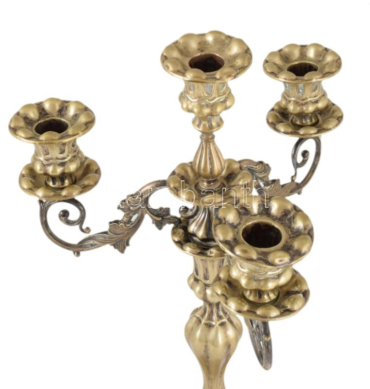 Gazdagon díszített ezüstözött négyágú gyertyatartó pár, m: 42 cm
