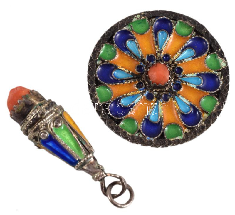 Függő és bross, belefoglalt korallal, d: 3 cm.