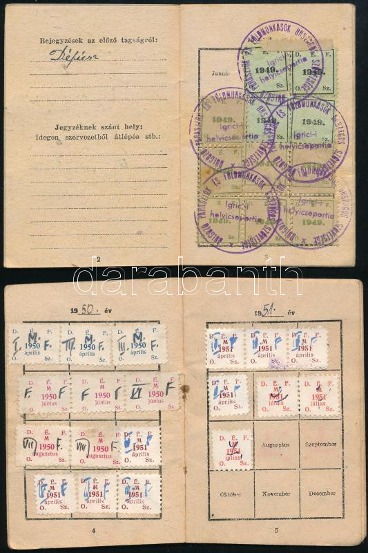 1949-1951 Dolgozó Parasztok és Földmunkások Országos Szövetsége tagság...