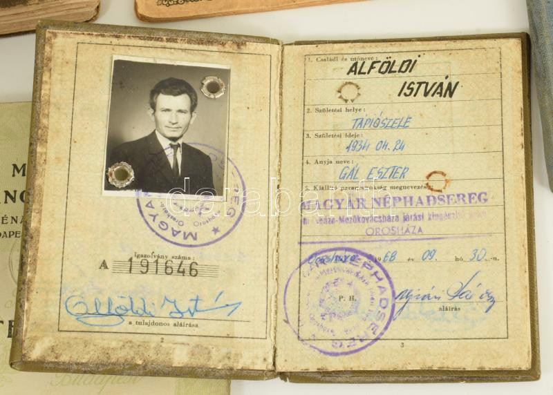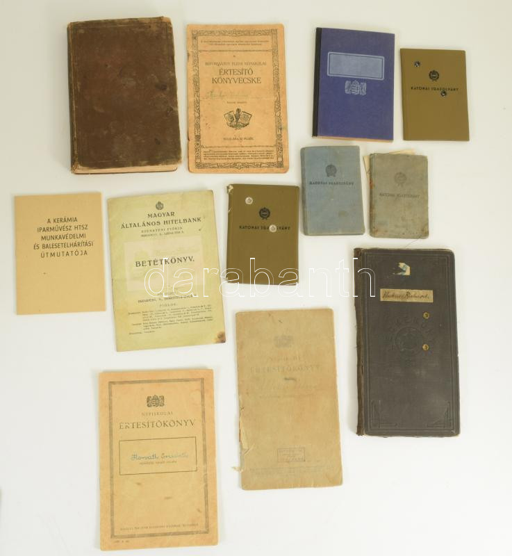 Vegyes igazolvány és okmány tétel (katonai igazolvány, balesetelhárítási útmutató, betétkönyv, stb.)