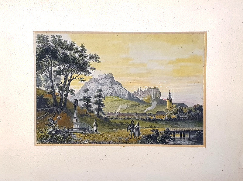 [Látkép] Siroki várrom. Ruine Sirok. Ludwig Rohbock (1824-1893) német grafikusművész részletgazdag, korabeli színezésű acélmetszete a "Magyarország és Erdély eredeti képekben" című illusztrált topográfiai műből.