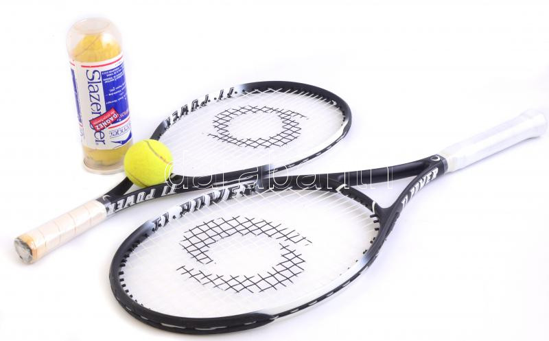 2 db amatőr teniszütő, teniszlabdákkal, tokkal.