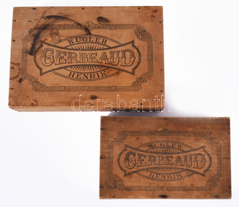 Kugler Henrik Gerbeaud 2 darab fa doboz, h: 16-20 cm