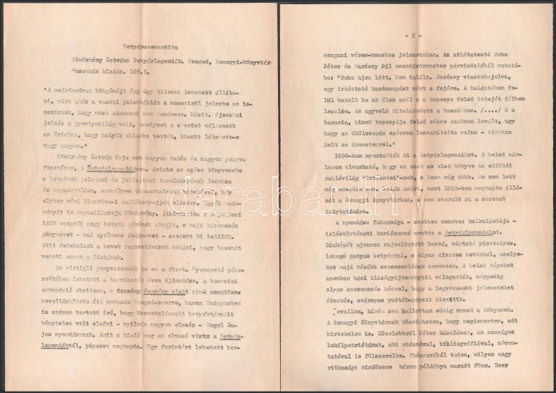 https://www.darabanth.com/en/512-Online-auction/512.0/Art-and-other-collectibles/Historical-documents-manuscripts~652/Vargha-Balazs-Betyarszemantika-Tomorkeny-Istvan-Betyarlegendak-Szeged-Somogyi-konyvt~II3436902