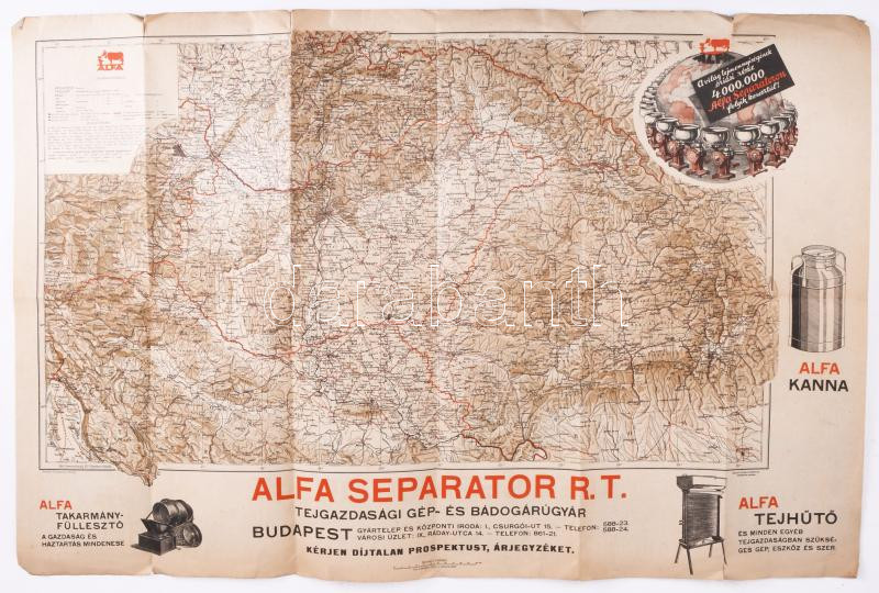 ca 1930 Alfa Separator reklámos országtérkép. szélén kis szakadásokkal...