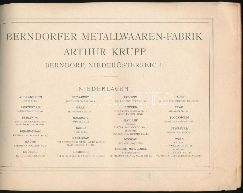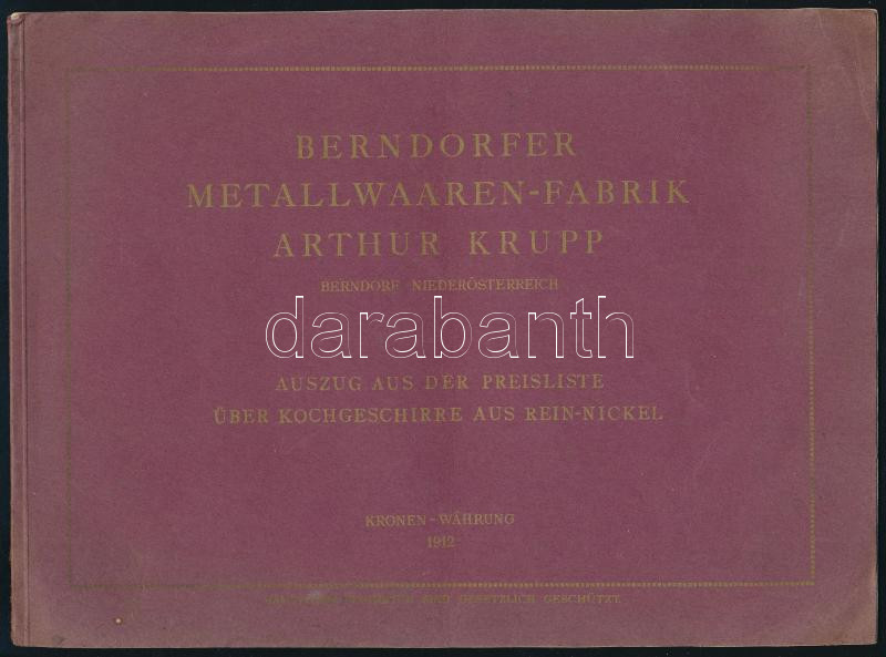 1912 Berndorfer Metallwarenfabrik árjegyzék