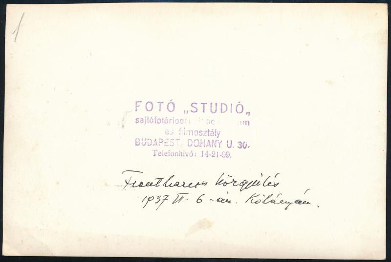 1937 Bp., az Országos Frontharcos Szövetség közgyűlése 1937.VI.6-án Kőbányán, a hátoldalon feliratozott, pecséttel jelzett fotó, 12x17,5 cm