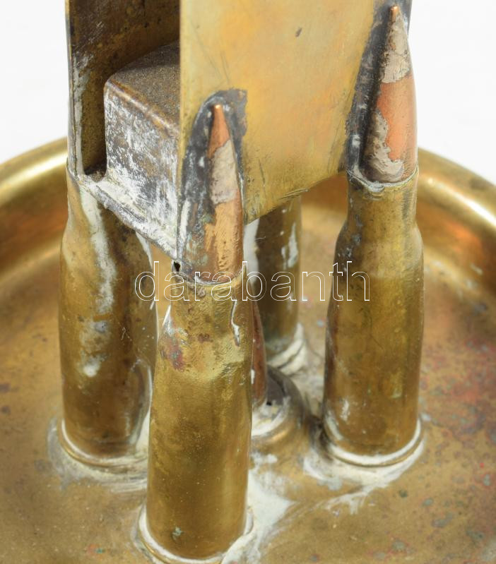 Töltényhüvelyekből készített bronz gyufatartó, m: 11,5 cm