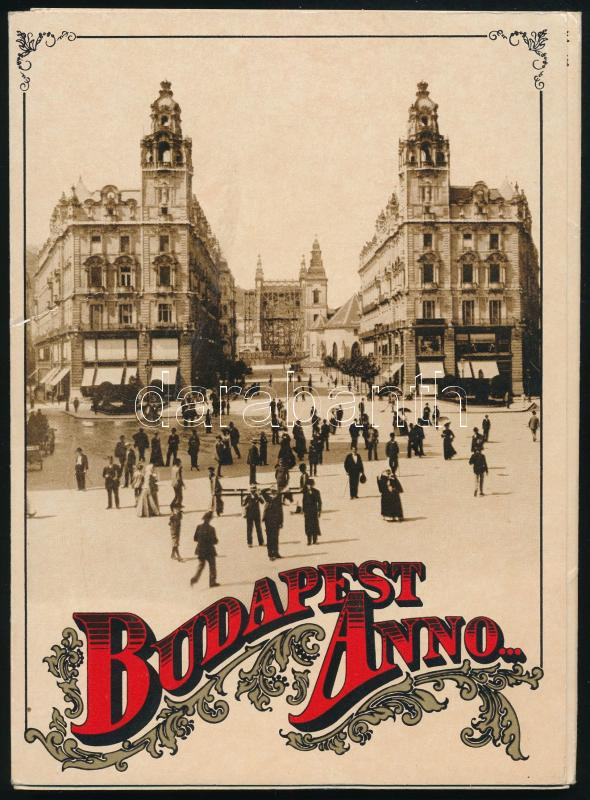 1986 Budapest Anno, 10 db Klösz György fotóival illusztrált képeslap, többnyelvű kísérőfüzettel. Kiadói papírmappában, 18x13 cm