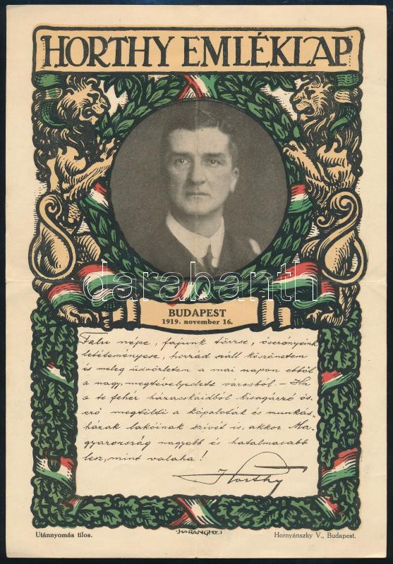 cca 1920-1925 Horthy Emléklap, eredeti, az 1919. november 16-i budapes... https://www.darabanth.com/en/512-Online-auction/512.0/Art-and-other-collectibles/Printed-Materials~688/cca-1920-1925-Horthy-Emleklap-eredeti-az-1919-november-16-i-budapesti-bevonulaskor-tartott-besz~II3464407