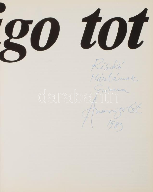 Amerigo Tot. A művész, Amerigo Tot (1909-1984) szobrászművész által DE... https://www.darabanth.com/en/512-Online-auction/512.0/Books/Books-Architecture-Art~672/Amerigo-Tot-A-muvesz-Amerigo-Tot-1909-1984-szobraszmuvesz-altal-DEDIKALT-peldany-Szerk~II3459423