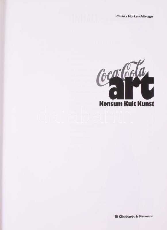 Christa Murken-Altrogge: Coca-Cola Art. Konsum, Kult, Kunst. München, 1991, Klinkhardt & Biermann. Gazdag képanyaggal illusztrálva. Német nyelven. Kiadói egészvászon-kötés, kiadói papír védőborítóban.