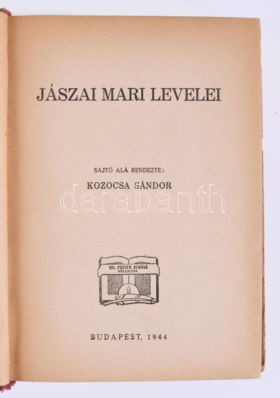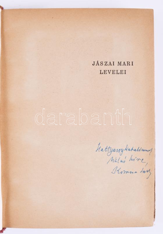 Jászai Mari levelei. Sajtó alá rendezte: Kozocsa Sándor. Kozocsa által DEDIKÁLT! Bp., 1944, Dr. Pintér Jenőné Vállalata. Félvászon kötés, gerinc sérült, kopottas állapotban.