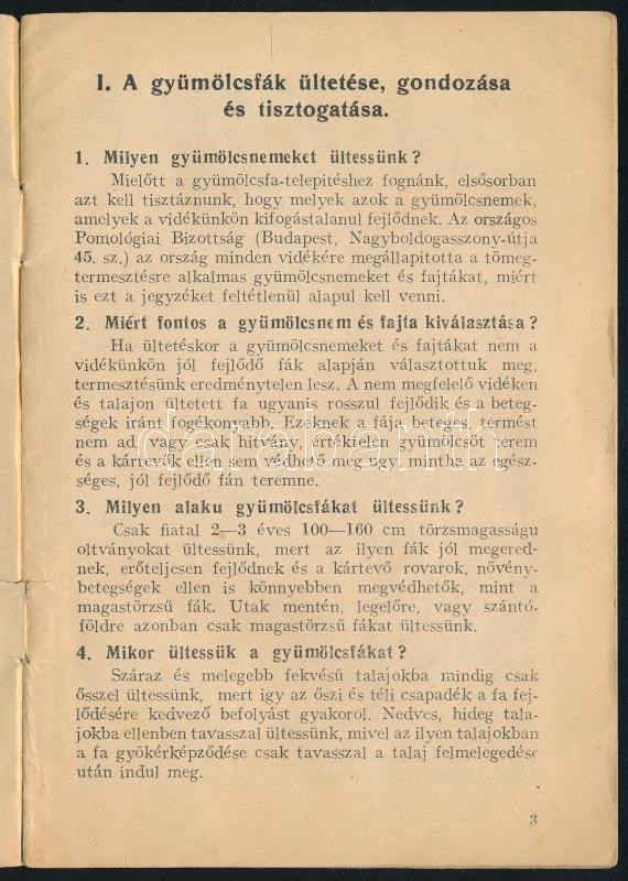 A gyümölcsös ápolásának és védelmének kiskátéja. 1931, Országos Mezőgazdasági Kamara. Kiadói papírkötés, kopottas állapotban.