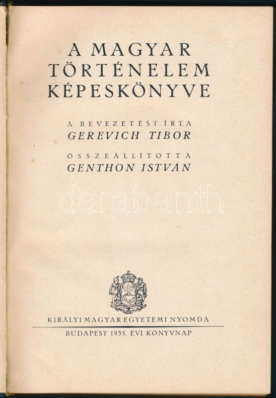 A magyar történelem képeskönyve. Össezáll.: Genthon István. A bevezeté... https://www.darabanth.com/en/512-Online-auction/512.0/Books/Books-History~670/A-magyar-tortenelem-kepeskonyve-Ossezall-Genthon-Istvan-A-bevezetest-irta-Gerevich-Tib~II3460897