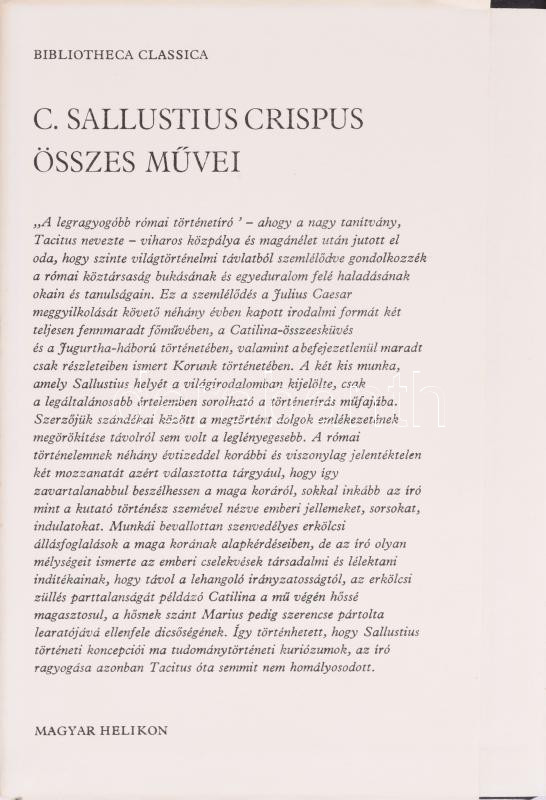 Sallustius. Magyar Helikon, 1978. Kiadói egészvászon-kötés kiadói papír védőborítóban