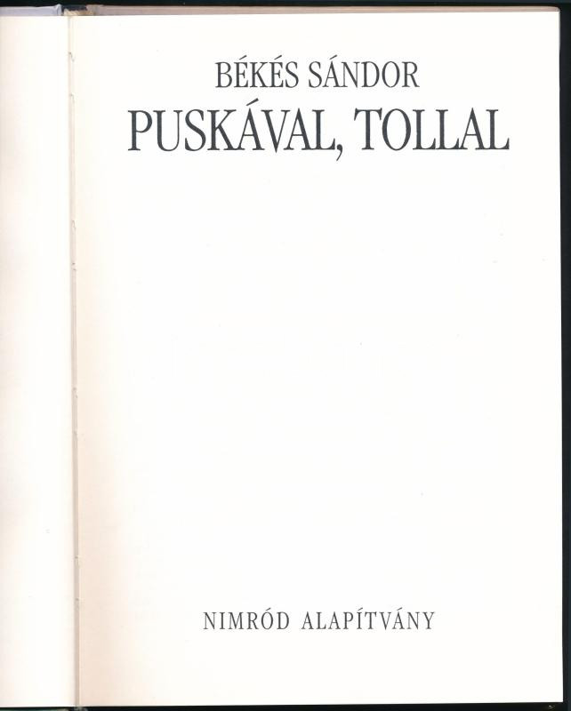 Békés Sándor: Puskával, tollal. (Bp., 1999), Nimród Alapítvány. Fekete-fehér fotókkal illusztrálva. Kiadói kartonált papírkötés.