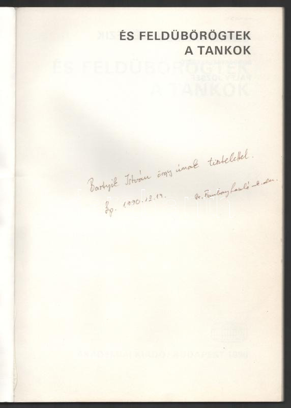Bombay László: És feldübörögtek a tankok. Századunk Emlékezik. A szerz... https://www.darabanth.com/en/512-Online-auction/512.0/Books/Books-Military~671/Bombay-Laszlo-Es-felduborogtek-a-tankok-Szazadunk-Emlekezik-A-szerzo-altal-3Cstrong3Ededi~II3438222