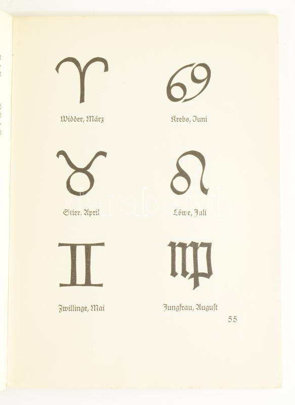 Description: Koch, Rudolf: Das Zeichenbuch welches alle Arten von Zeichen enthält, wie sie gebraucht worden sind in den frühesten Zeiten, bei den Völkern des Altertums, im frühen Christentum und im Mittelalter. Offenbach am Main, 1926. Verlag Von Wilh.,Gerstung 104p. Kiadói papírkötésben, sérült gerinccel