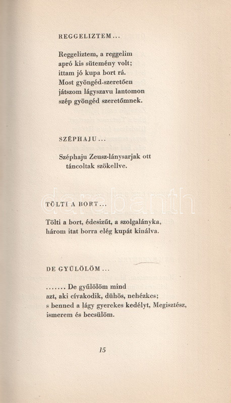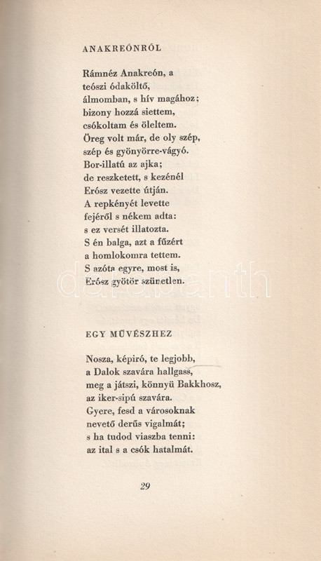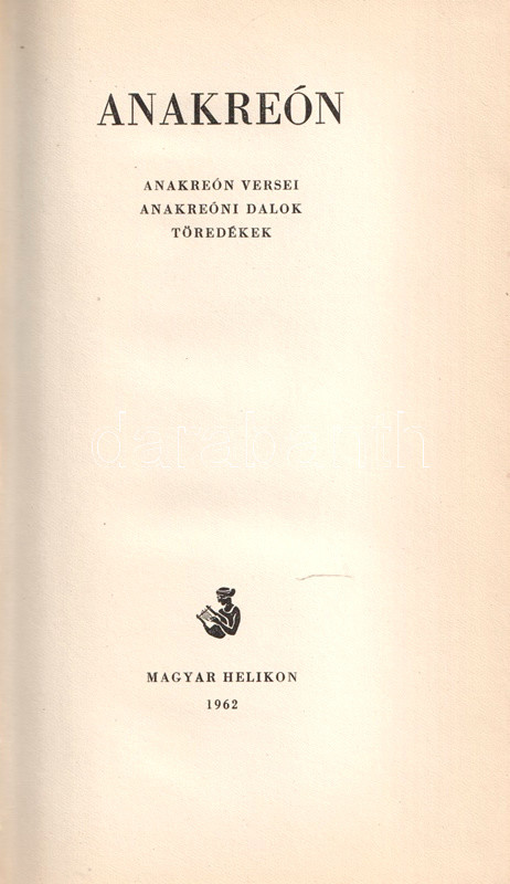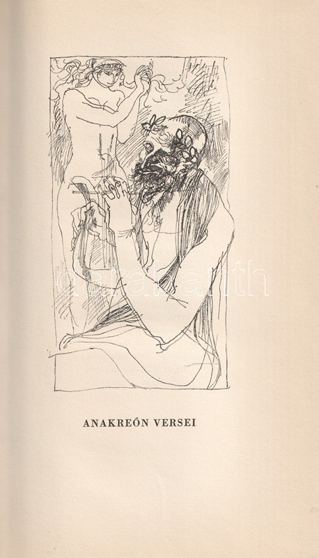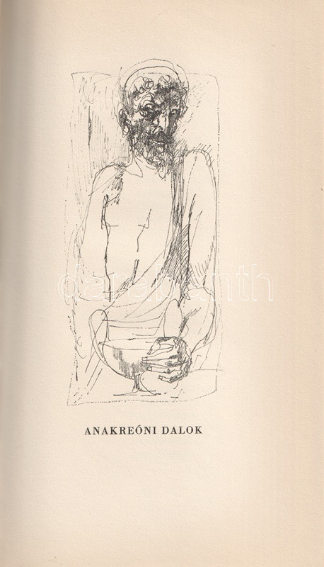 Anekreón versei. Anekreóni dalok, töredékek. Fordította Devecseri Gábor. Illusztrálta Szász Endre. (Számozott.)