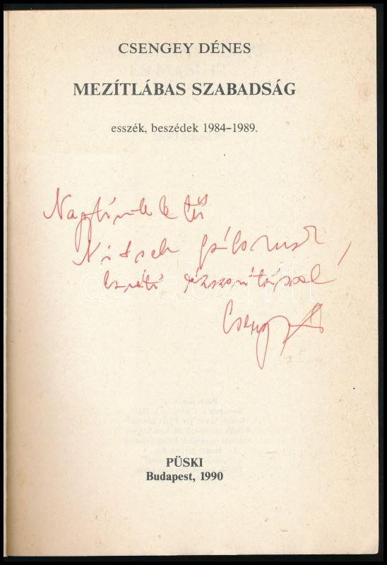 Csengey Dénes: Mezítlábas szabadság. Esszék, beszédek 1984-1989. A sze... https://www.darabanth.com/en/512-Online-auction/512.0/Books/Books-Other-rarities~690/Csengey-Denes-Mezitlabas-szabadsag-Esszek-beszedek-1984-1989-A-szerzo-Csengey-Denes-19~II3459747