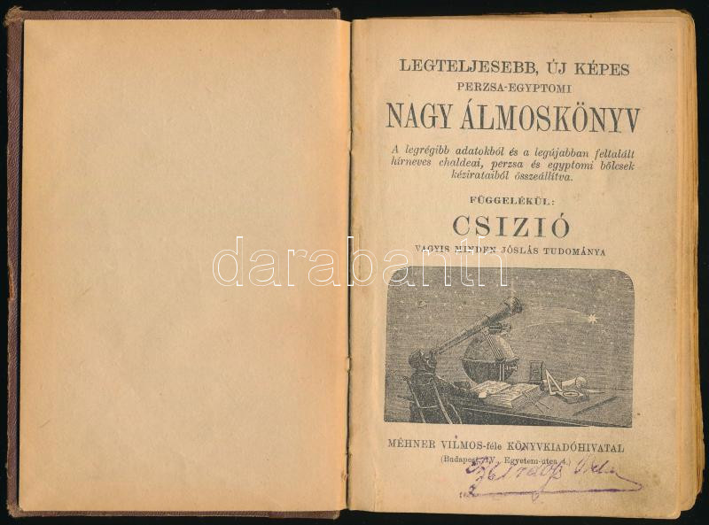 Legteljesebb, új képes perzsa-egyiptomi nagy álmoskönyv. Függelékül: c... https://www.darabanth.com/en/512-Online-auction/512.0/Books/Books-Other-rarities~690/Legteljesebb-uj-kepes-perzsa-egyiptomi-nagy-almoskonyv-Fuggelekul-csizio-vagyis-minden-j~II3463191
