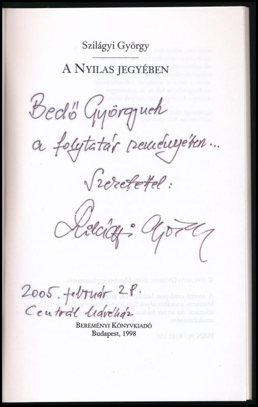 Szilágyi György: A Nyilas jegyében. A szerző, Szilágyi György (1928-20... https://www.darabanth.com/en/512-Online-auction/512.0/Books/Books-Other-rarities~690/Szilagyi-Gyorgy-A-Nyilas-jegyeben-A-szerzo-Szilagyi-Gyorgy-1928-2010-iro-humorista-kC3~II3415587
