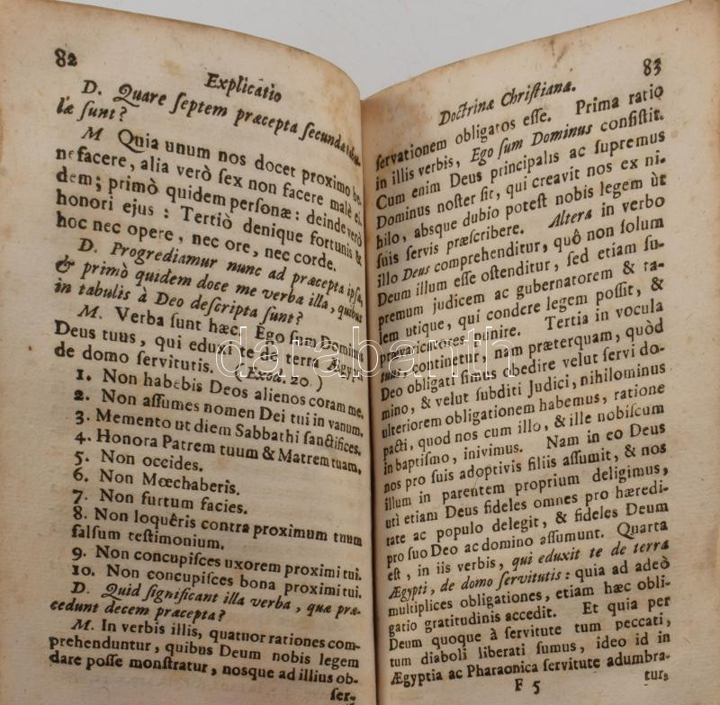 [Bellarmin Szent Róbert] Bellarmino Roberto: Christianae doctrinae copiosa explicatio jussu sanctissimi domini Clementis VIII., ... Budae, 1744, Typis Veronicae Nottensteinin Viduae, 6+204+2 p. Korabeli egészbőr-kötés, javított gerinccel, kissé kopott borítóval, a címlapon bejegyzésekkel, kissé foltos lapokkal.