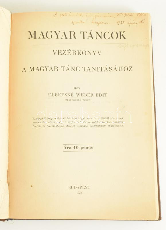 Elekesné Weber Edit: Magyar táncok. Vezérkönyv a magyar tánc tanításáh... https://www.darabanth.com/en/512-Online-auction/512.0/Books/Books-Religion~681/Elekesne-Weber-Edit-Magyar-tancok-Vezerkonyv-a-magyar-tanc-tanitasahoz-Bp-1935-Szerzo~II3465104