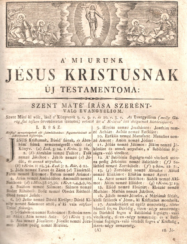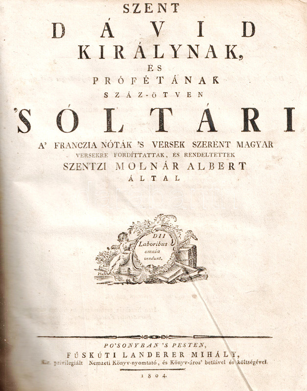 Po'sonyban és Pesten, 1804. Füskúti Landerer Mihály' betűivel, és költségével. [4] + 863 + [1] p. (Ószövetség); 221 + [3] p. (Apokrif iratok); 296 p. (Újszövetség); [4] + 106 p. (Zsoltárok).