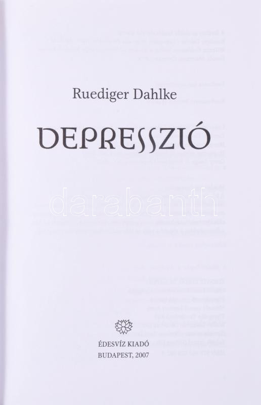 https://www.darabanth.com/en/512-Online-auction/512.0/Books/Books-Social-sciences~677/Ruediger-Dahlke-Depresszio-Edesviz-Kiado-2007-Kiadoi-kartonalt-papirkotesben~II3458981