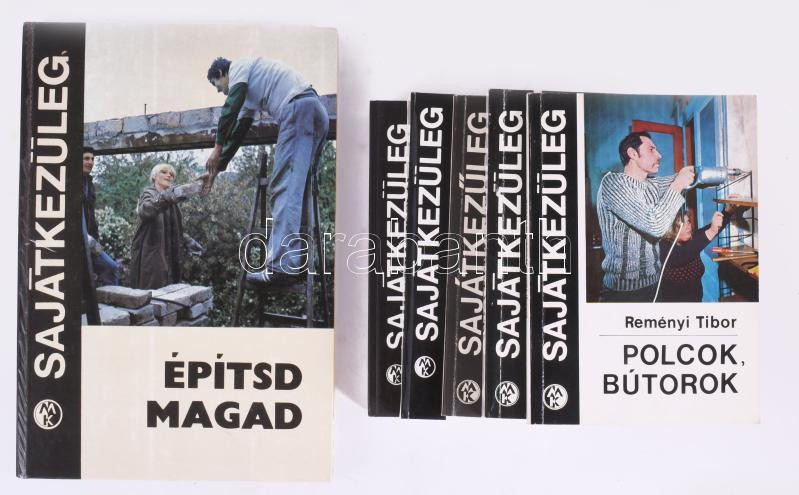 Description: Sajátkezűleg sorozat 6 kötete: Reményi Tibor: Polcok, bútorok.; Adam Słodowy: Házi mindentudó.; Kovács Géza: Tapétázás.; Ház körüli munkák.; Adam Słodowy: Szeretek barkácsolni.; Építsd magad. Bp., 1977-1984, Műszaki Könyvkiadó. Kiadói papírkötés / kartonált papírkötés, vegyes állapotban.