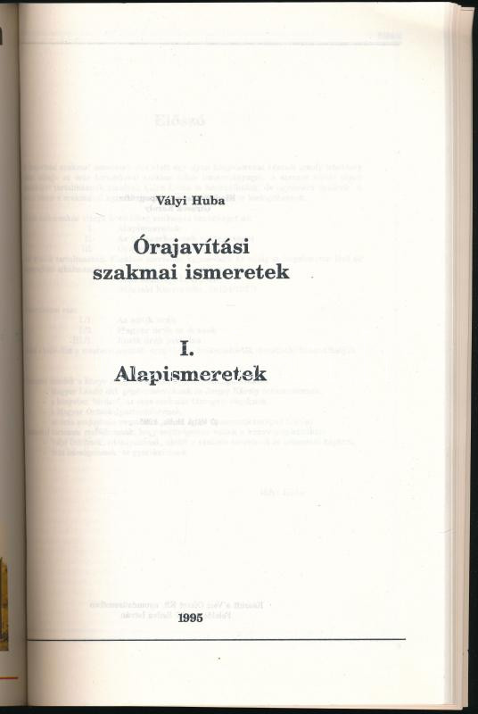 Vályi Huba: Órajavítási szakmai ismeretek I. Alapismeretek. 1995. Kiad...