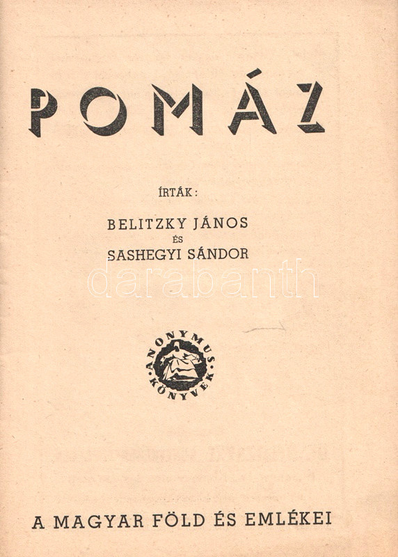 https://www.darabanth.com/en/512-Online-auction/512.0/Books/Books-Travelling-Local-History~667/Belitzky-Janos-Sashegyi-Sandor--Pomaz3Cbr3E-Pomaz-1939-Belitzky-kiadas-Grafika-Nyomd~II3418921