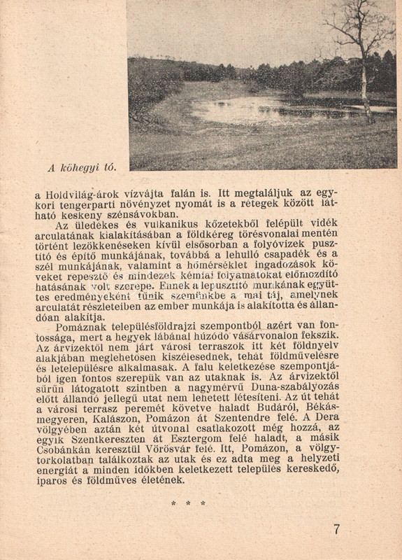 Oldalszámozáson belül Belitzky János geográfiai ábráival és Sashegyi Sándor felvételeivel. Helytörténeti dolgozatunk Pomáz településének földrajzát és társadalomtörténetét vázolja.