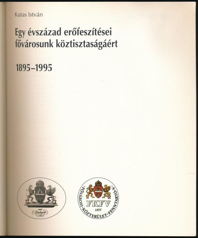 Kutas István: Egy évszázad erőfeszítései fővárosunk köztisztaságáért. 1895-1995. [Bp., 1995], Fővárosi Közterület-fenntartó Vállalat. Fekete-fehér és színes képekkel illusztrálva. Kiadói papírkötés, lapszéli ázásnyomokkal.