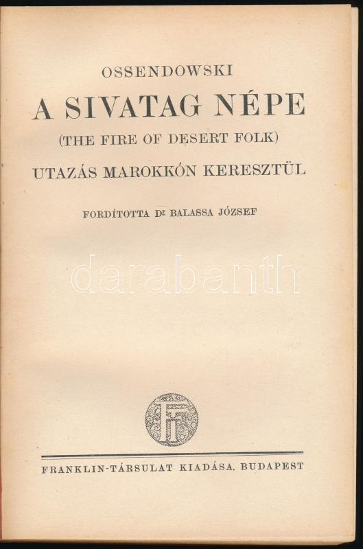 Ossendowski, [Ferdynand Antoni]: A sivatag népe. Utazás Marokkón keres... https://www.darabanth.com/en/512-Online-auction/512.0/Books/Books-Travelling-Local-History~667/Ossendowski-Ferdynand-Antoni-A-sivatag-nepe-Utazas-Marokkon-keresztul-Ford-Balassa-Jozs~II3461416