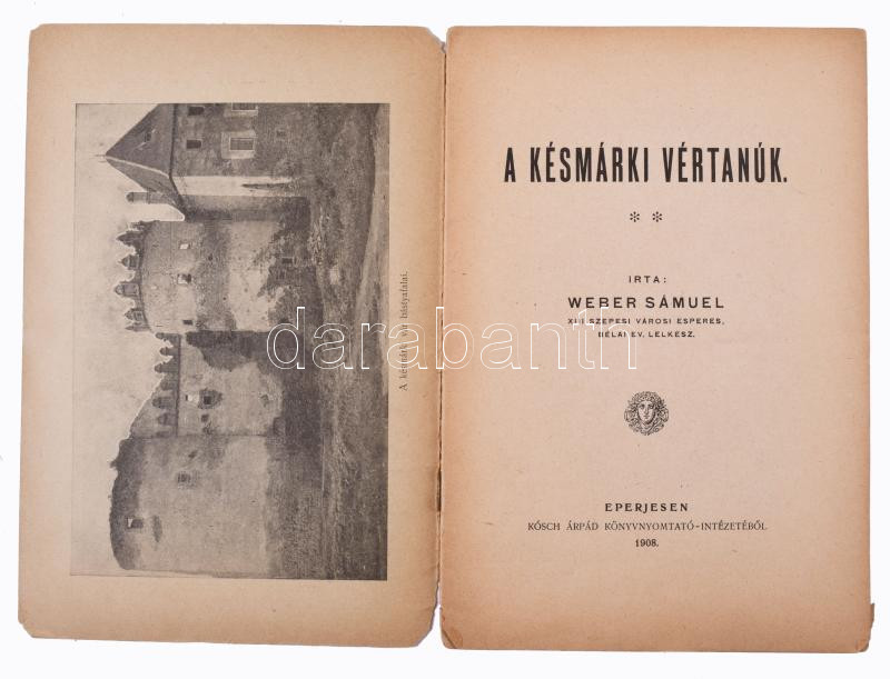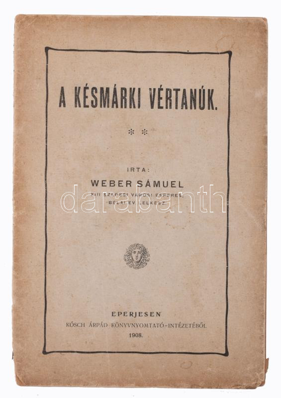 Weber Sámuel: A késmárki vértanúk. Eperjes, 1908., Kósch Árpád, 24 p. Kiadói papírkötés, kissé sérült borítóval.