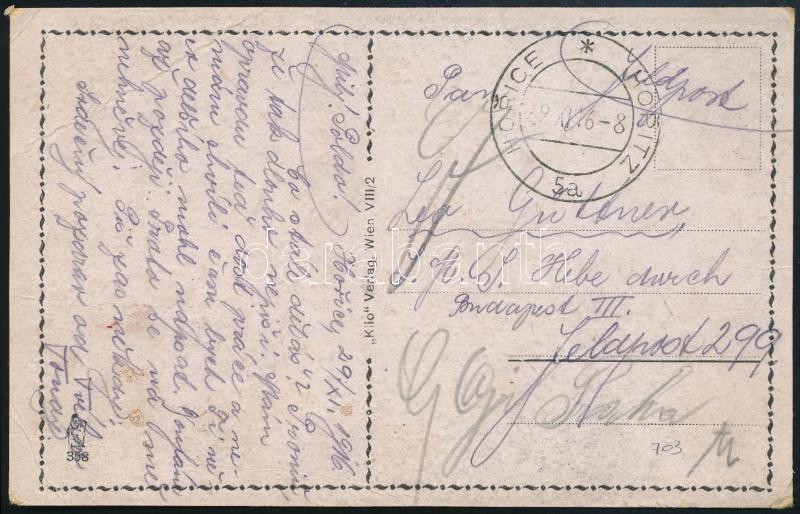 1916 Képeslap Budapesten keresztül Leopold Güttnernek, a Dunai Flottilla Parancsnokság tagjának az S.M.S. Hebe-n