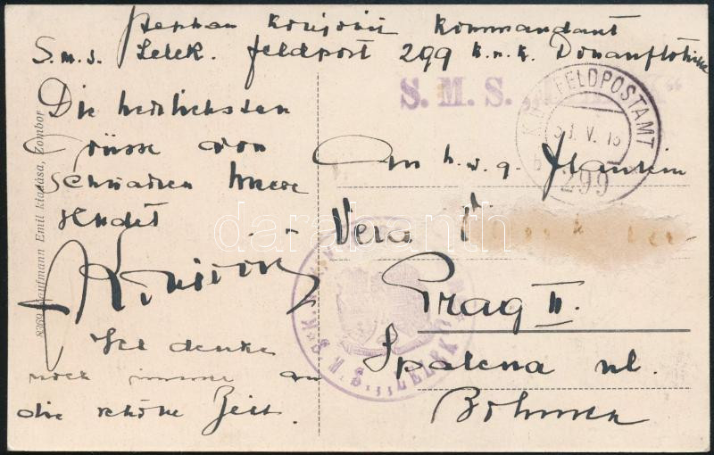 Description: 1918 Tábori posta képeslap "K.u.K. FELDPOSTAMT / 299" , "K.u.K. Kriegsmarine / S.M.S. Lelek" , "S.M.S. LELEK" Ez a képeslap igazolja, hogy Konyovits még egy hónappal a Kalis/Kohl által megadott időkeret után is az S.M.S. Lelek parancsnoka volt. Nagyon ritka és értékes darab!