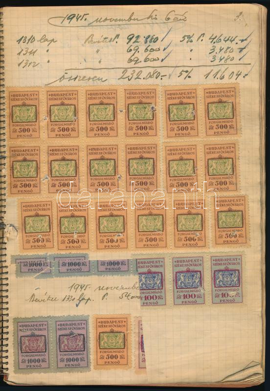 https://www.darabanth.com/en/512-Online-auction/512.0/Hungarian-philately-and-postal-history/Document-Stamps~586/Forgalmi-adokonyv-1945-novembertol-rengeteg-adobelyeggel~II3458232