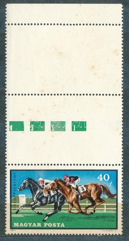 1971 Lósport 40f felül két üres mezővel, ívszéllel, nyomdai jelzésekke...