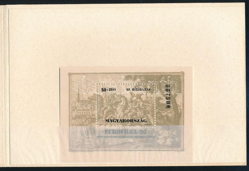 https://www.darabanth.com/en/512-Online-auction/512.0/Hungarian-philately-and-postal-history/Issues-between-1990-1999~649/1992-Belyegnap-Eurofilex-ajandek-blokk-tokban-18000~II3458930