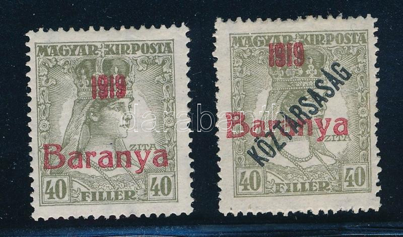 Baranya I. 1919 Zita 40f + Zita/Köztársaság 40f Bodor vizsgálójellel (...