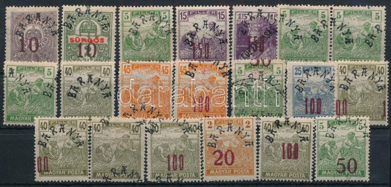 Baranya II. 1919 20 db bélyeg, közte eltolódott felülnyomás, hiányzó é...
