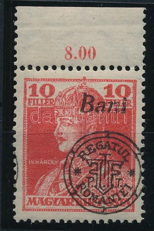 Nagyvárad 1919 Károly ívszéli 10f eltolódott felülnyomással, Bodor viz...